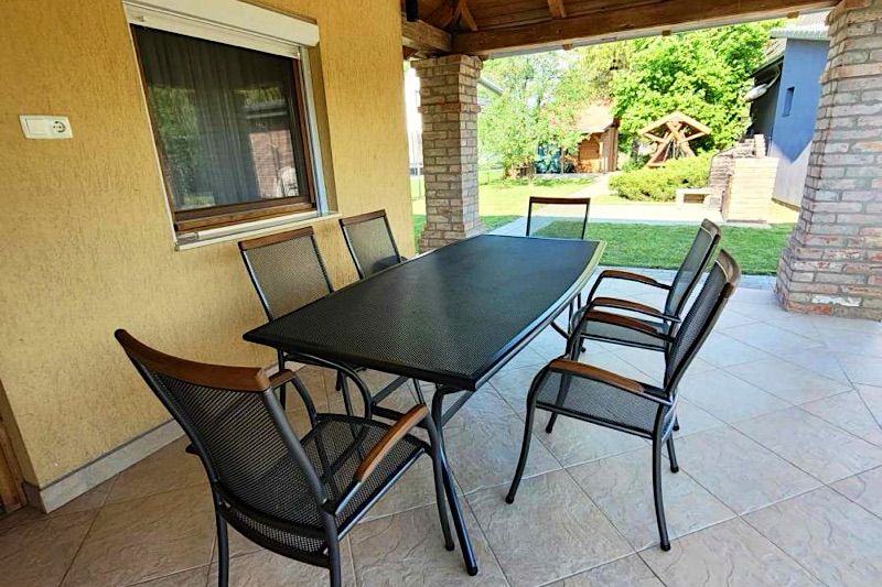 Szolgáltatások: 720 nm-es parkosított, vízparti telek. 3 gépkocsi részére parkoló a zárt udvaron. Épített főző-grillező hely, bogrács, tárcsa, nyárs, tűzifa biztosított.