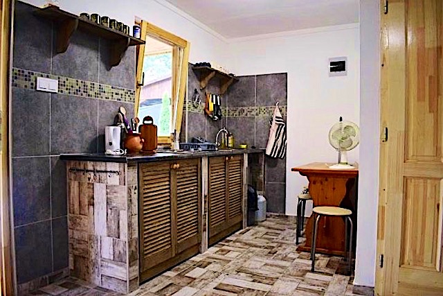 Az új építésű faház klimatizált, max. 6 fő befogadására alkalmas. A nyaralóban tetőtéri háló, földszinti étkező, konyha és fürdőszoba van kialakítva. A konyhában hűtőszekrény, mikrohullámú sütő, elektromos főzőlap, konyhai eszközök állnak a vendégek rendelkezésére.