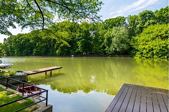 A három oldalról zárt, vízpart felől átjárható üdülő fedett teraszán kényelmes kerti bútorokból élvezhető az Arborétumra nyíló páratlan kilátás. A nyaraló 12 m széles vízpartjához önálló, 4 x 2,5 méteres stég kapcsolódik, ahol fürdőzésre, napozásra nyílik lehetőség. Emellett egy vízibicikli is rendelkezésre áll. Grillt, bográcsot, nyársakat valamint a sütögetéshez szükséges tűzifát biztosítunk. Parkolásra telken belül 1, míg az utcán 2 gépkocsi részére van lehetőség. (EG19009624)