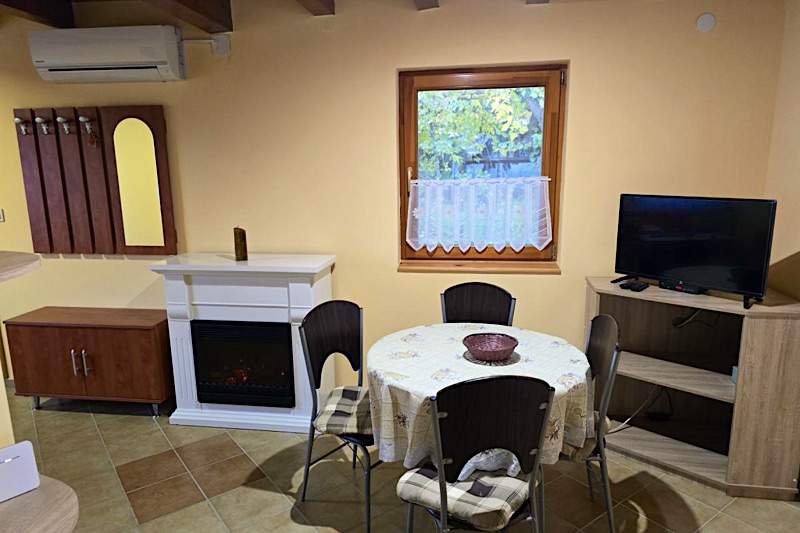 Az épület közvetlenül a vízparton található, így nem marad le egyetlen kapásról sem, akár a teraszon, akár a nappaliban tartózkodik és mindeközben a családja és a barátai közelségét sem kell mellőznie. Kiváló horgászati lehetőség nyílik az intenzíven telepített vízen. A földszinten egy amerikai konyhás nappali, egy fürdőszoba WC-vel, az emeleten egy kisebb és egy nagyobb méretű hálószoba található. A hálószobákban és a nappaliban a DIGI összes tv-csatornáját lehet nézni. A földszinten és az emeleten a hűtő-fűtő klima mind a nagy melegben, mind a hűvösebb idő esetén is kellemes hőmérsékletet biztosít. A nyílászárók szúnyoghálóval felszereltek.