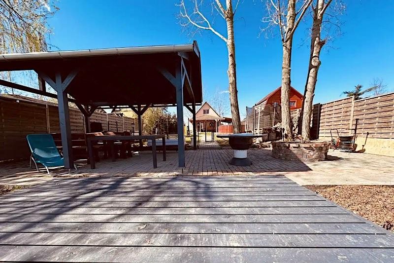 Egy igazi kis gyöngyszem a ház ami 5 +3 fő befogadására alkalmas. Közvetlenül a vízparton helyezkedik el. Vendégeink élvezhetik a medence hűs vizét és a jakuzzi által nyújtott teljes kikapcsolódást és lazítást. A csend biztosítja a belső méregtelenítést a külsőt pedig szauna biztosítja.
