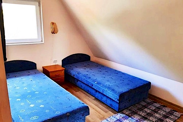 A tetőtérben 3 hálószoba van, az alsó szinten a nappaliban pedig egy kihúzható kanapé. A tetőtérben külön térítés mellett klíma vehető igénybe. A nyári hónapokban egy vízforgatós, medence teszi még kellemesebbé a pihenést, kikapcsolódást.