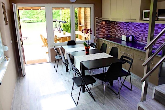 Két szintes összkomfortos nyaralóház 6 +3 férőhellyel. 3 különálló klimatizált szoba, nagy terasz, jól felszerelt konyha, két fürdőszoba. Mindhárom szobában van egy franciaágy és egy kétszemélyes kinyitható kanapé. 3 db TV kábelcsatornákkal.