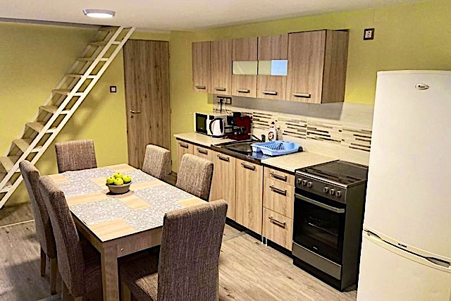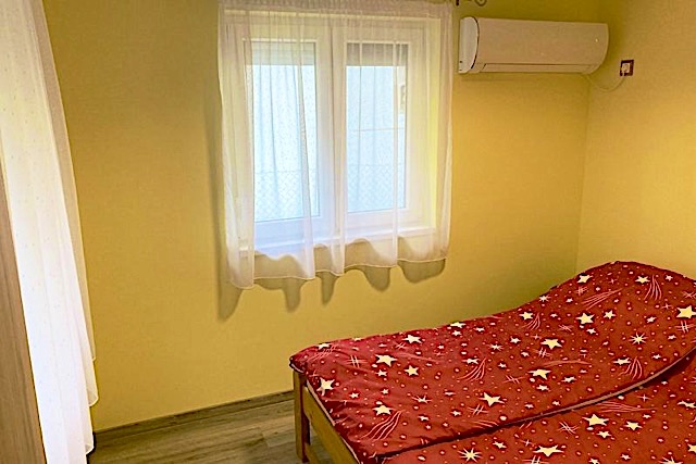 A 3 szobában 6 +2 fő elhelyezésére van lehetőség. Felszereltség: Teljesen felszerelt konyha (fagyasztós hűtő, mikró, villanytűzhely, kávéfőző, vízforraló), Fürdőben tusoló, külön WC, TV (széles csatornakínálat), internet (Wifi), Mind a három szobában klíma, Ablakokon redőny, szúnyogháló, 20nm-es fedett terasz, Fedett kocsibeálló.