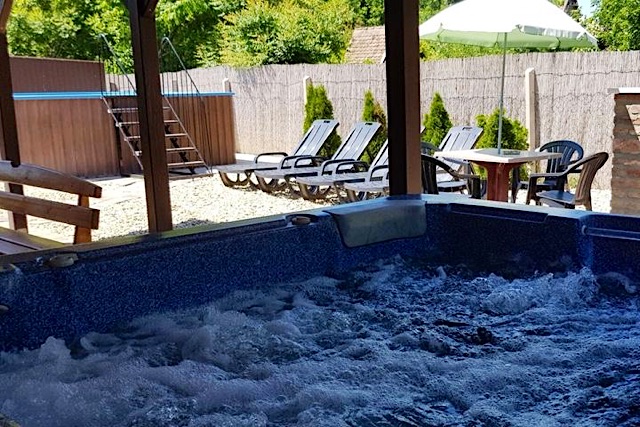 A szépen parkosított kertben nyitott fürdőmedence, jakuzzi, rönkjátszótér, fedett terasz, teraszbútorzattal, napozóágyakkal, igényes, sokoldalúan kialakított kerti grillező és bográcsozó hely található. A Holt-Körös 300 méteres szabad partszakaszától mindössze 80 méterre fekszünk, így remek lehetőség a horgászatra és fürdésre vágyóknak.