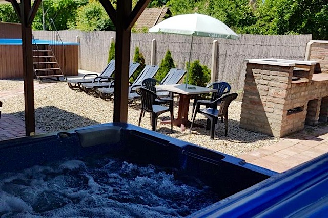 A szépen parkosított kertben nyitott fürdőmedence, jakuzzi, rönkjátszótér, fedett terasz, teraszbútorzattal, napozóágyakkal, igényes, sokoldalúan kialakított kerti grillező és bográcsozó hely található. A Holt-Körös 300 méteres szabad partszakaszától mindössze 80 méterre fekszünk, így remek lehetőség a horgászatra és fürdésre vágyóknak.