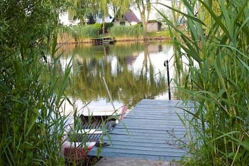 Vízparti 11 fős vendégház Békésszentandráson (medence, csónak, stég)