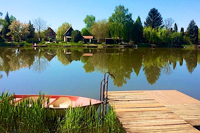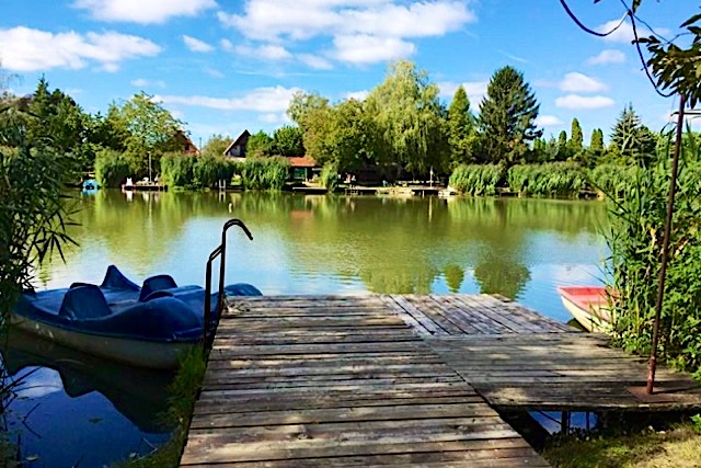 Körösparti 9 fős vízparti nyaraló csónakkal megvilágított mólóval