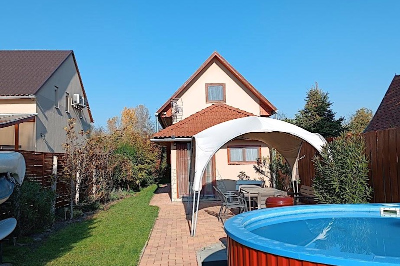 A ház alsó szintjén nappali, konyha étkezővel és fürdőszoba található. Vízellátás vezetékes rendszerről történik. Konyhája mikrohullámú sütővel, Szarvasi kávéfőzővel, gáztűzhellyel, fagyasztós hűtőszekrénnyel felszerelt. Az emeleten található vízpartra néző hálószoba két egyszemélyes ággyal felszerelt. A másik galéria jellegű hálórészben egy kétszemélyes és egy egyszemélyes ágy található. Vendégházunk maximum 5 vendéget tud fogadni melybe a gyerekek is beleszámítanak kortól függetlenül. A fürdőszoba zuhanyzós, pici gyermeknek babakádat biztosítunk. A telek vízparti részén kerti pavilon asztallal és székekkel biztosítja a szabadtéri pihenést. Hangos bulizni vágyók kérjük ne vendégházunkat válasszák.