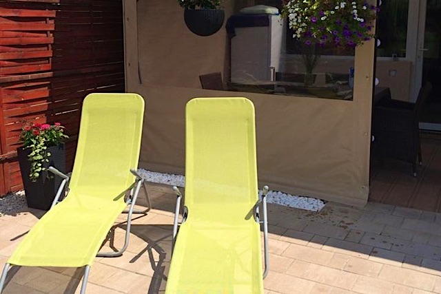 A fedett, minden oldalról védett teraszon kényelmes kerti rattan bútorok kaptak helyet, valamint itt egy további hűtőszekrény is üzemel. A gondozott kertben egy hat személyes jacuzzi, továbbá bogrács és tárcsasütő is rendelkezésre állnak, emellett a sütögetéshez szükséges gázpalackot is biztosítjuk. A parton egy kerti szolár zuhanyzó lábmosóval, továbbá két napozóágy került elhelyezésre. A mintegy 8 méter széles vízparthoz egy 1,5 x 5 méteres saját stég valamint vízibicikli is tartozik, mellyel felfedezheti a holtág természeti szépségeit. A nyaraló három oldalról zárt, a vízpart felől nyitott. Két személygépkocsi számára az épület előtt parkoló került kialakításra. Ebben az üdülőben felár ellenében házi kedvencét is szívesen látjuk.