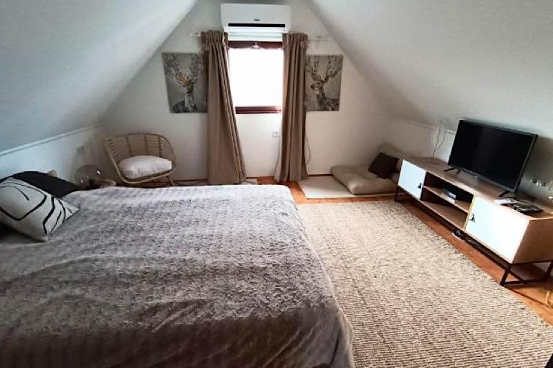 Az épület emeletes, a földszinten található egy teljesen felszerelt nappali-konyha, valamint a tusolós fürdőszoba az emeleten pedig egy nagyobb és egy kisebb hálószoba. A nagy hálószobában franciaágyas, a nappaliban és a kisebb hálószobában pedig kinyitható kanapék találhatóak. Horgászcsónak, kenu és kajak is rendelkezésetekre áll. A környéken biciklivel kirándulhattok. A vendégház maximum 5 főt tud fogadni, így pároknak, barátoknak és családoknak is tökéletes.