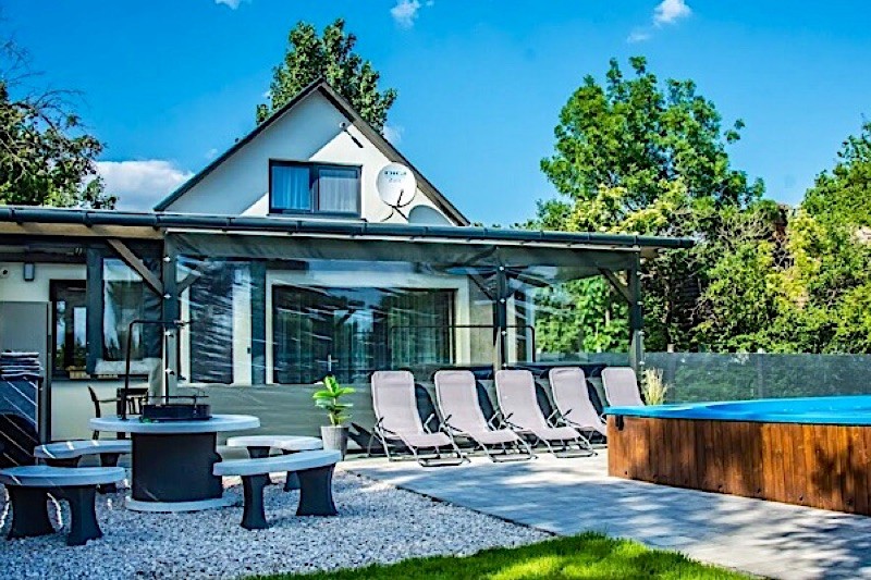Klimatizált helységek, kültéri medence várja a hozzánk érkező vendégeket. A kisebbeknek külön játékokat, játszóteret helyeztünk el. Lehetőség van SUP, vízi bicikli, csónak ingyenes használatára, illetve kerékpár bérlésre. Sportolni vágyóknak ping-pong asztal. A ház két szintes, az emeleten 6 fő az alsó szinten 4 fő tud pihenni.