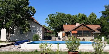 Medencés, nagy nyaraló, közvetlen vízparton, kiadó Békésszentandráson