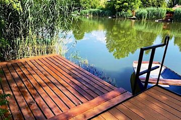 Körösparti igényes 6 fős nyaraló, nagy stég, vízibicikli, SUP deszka
