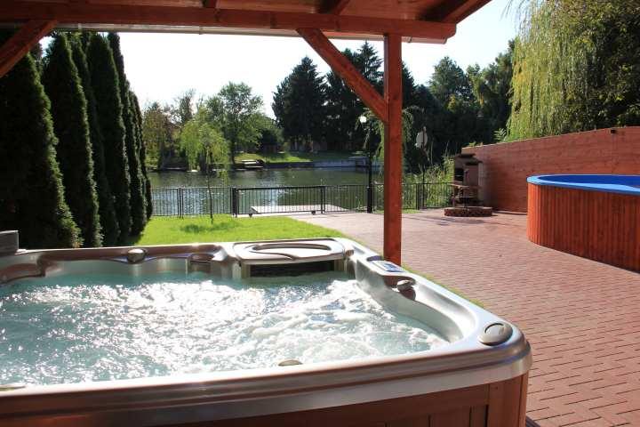A ház 8 +2 fő befogadására alkalmas, a konyha teljesen felszerelt. Az emeleten a szobák és a hálófülke, a földszinten a 2 db fürdőszoba, konyha, ebédlő és nappali található. A fedett terasz mellett fedett helyen jakuzzi, az udvaron medence és játszótér található, a part felé pedig sütögető,- és bográcsozó hely. A nyaraló zárt, parkolni az udvaron belül is lehet.