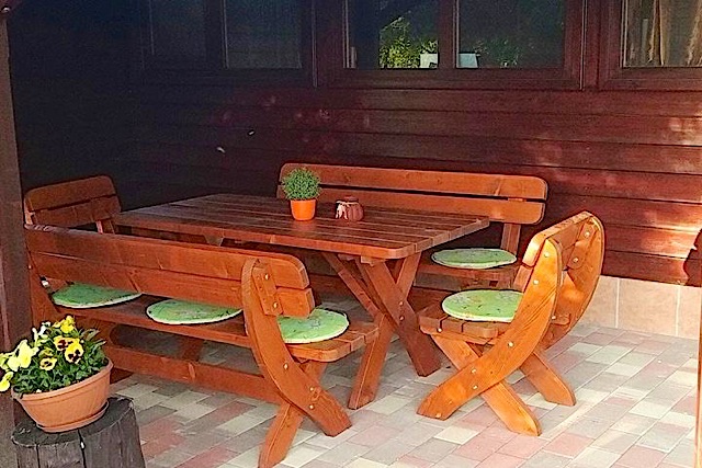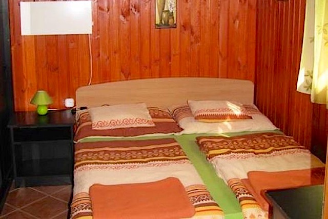 A saját stéggel, csónakkal rendelkező faház 6 +2 fő befogadására alkalmas. Az épületben a földszinten nappali, egy franciaágyas háló, fürdőszoba, WC, felszerelt konyha, a tetőtérben egy 4 férőhelyes szoba található.