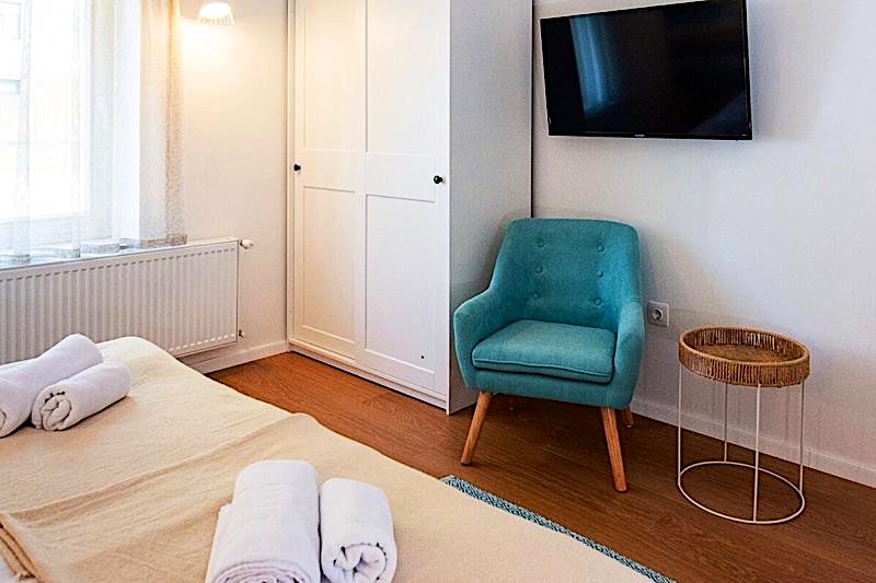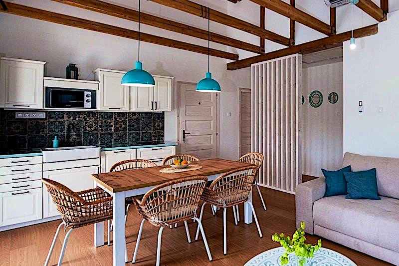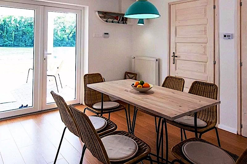 Az apartmanokban 6-6 fő kényelmesen elfér, az emeleti apartman nappalijában az ülőgarnitúra még 2 fő részére biztosít kényelmes alvási lehetőséget. A fölszinti szobák méretükből adódóan pótágyazhatók ill. babaággyal bővíthetők.A szobák felszereltsége: nagyméretű, prémium hotel ágyak és ágyneműk, törülközők, strand törülközők, fotel, okos TV, klíma, szekrény, tükör. Az ágyak többnyire összetolhatók és széthúzhatók, az emeleten van egy franciaágyunk és a földszinten 1 db 2 ágyas szobánk. A fürdőszobáink zuhanykabinnal, WC-vel felszereltek, külön fűthetők, babakádat biztosítunk.A konyhák felszereltsége: nagyméretű fagyasztós hűtőszekrény, mikró, vízforraló, Nespresso kávégép, teríték, edények, poharak, csészék evő- és tálalóeszközök. Mindkét apartmannak saját terasza van, teraszbútorokkal és pazar panorámával a vízre és a naplementékre.A