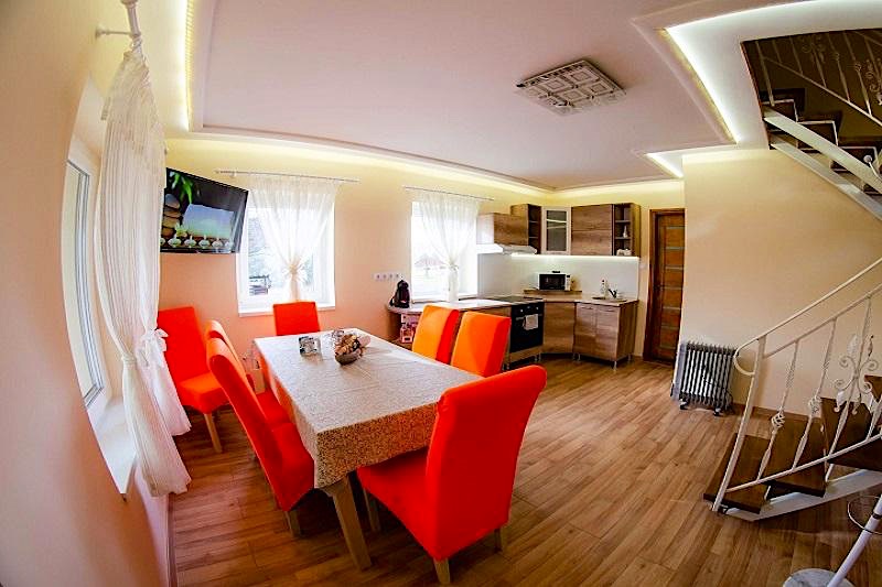 A nyaraló minden évszakban igénybe vehető, klimatizált, redőnnyel, szúnyoghálóval ellátott. Wifi, digi rendszerű okos TV. Üvegteraszon mobiljakuzzi, fényterápiás infraszauna gondoskodik vendégeink feltöltődéséről. Parkosított udvaron tűzrakóhely, bogrács álvánnyal, grillsütő, fémvázas merevfalú családi medence napozószékekkel is helyet kapott. Szórakozást foci, tollas, darts, gyerekcsocsó, ping-pong biztosítja. Udvaron 3 autó számára biztosítunk parkolást.