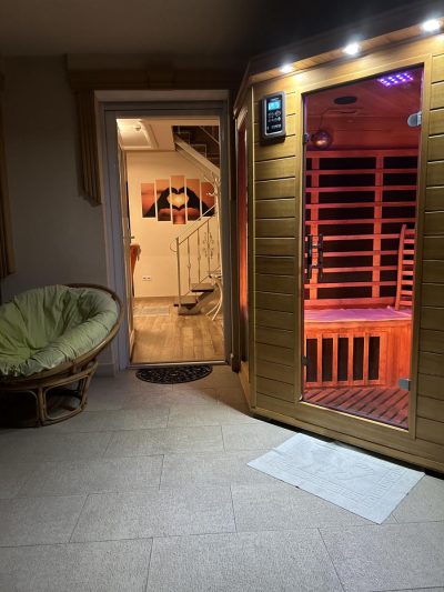 A nyaraló minden évszakban igénybe vehető, klimatizált, redőnnyel, szúnyoghálóval ellátott. Wifi, digi rendszerű okos TV. Üvegteraszon mobiljakuzzi, fényterápiás infraszauna gondoskodik vendégeink feltöltődéséről. Parkosított udvaron tűzrakóhely, bogrács álvánnyal, grillsütő, fémvázas merevfalú családi medence napozószékekkel is helyet kapott. Szórakozást foci, tollas, darts, gyerekcsocsó, ping-pong biztosítja. Udvaron 3 autó számára biztosítunk parkolást.
